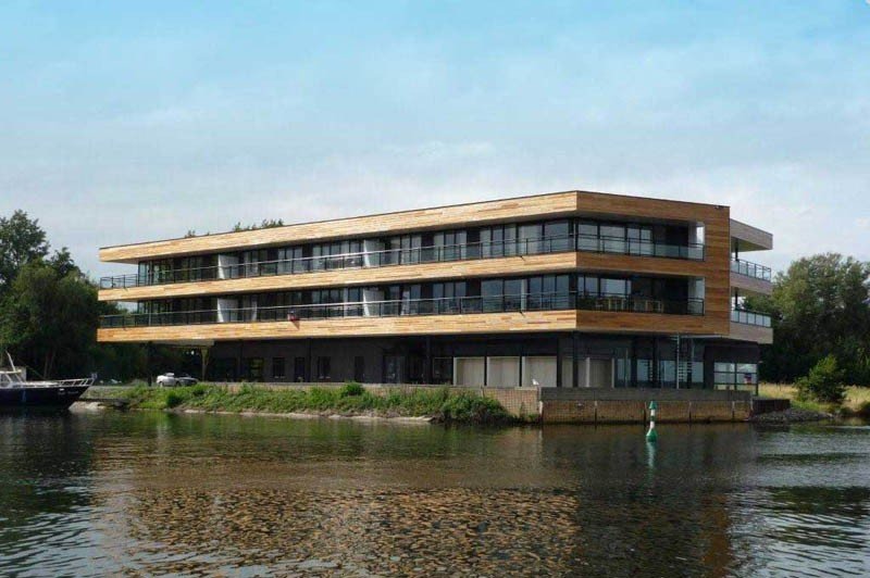 – royale appartementen met uitzicht op het Veerse Meer en de jachthaven, geïnspireerd door de typisch zeeuwse horizontale lijnen en de materialen van de scheepswerf –