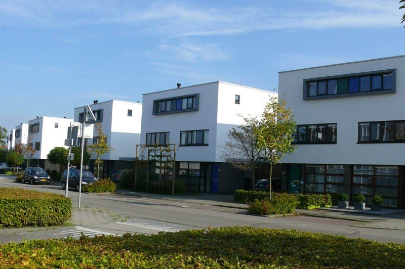 – 22 dubbele woningen en 2 kopwoningen type Mondriaan, gerealiseerd onder supervisie van prof. Herman Hertzberger –