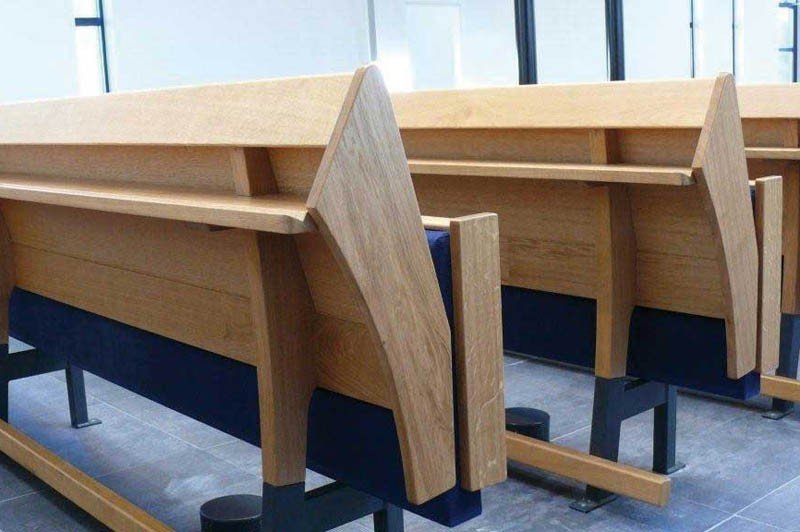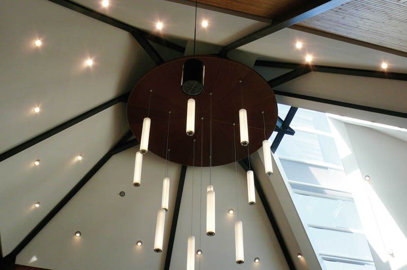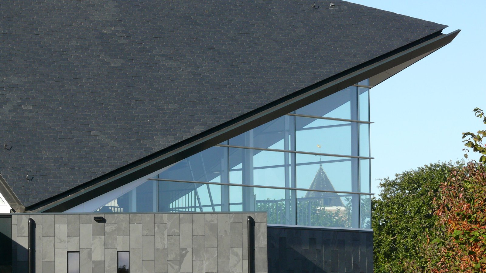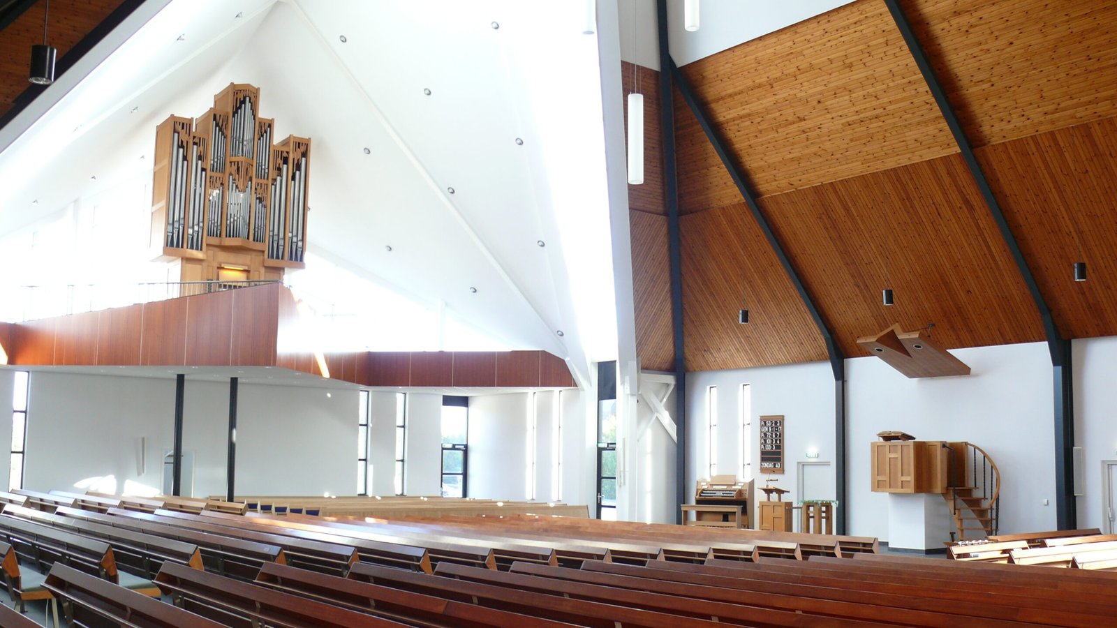 – ontferming onder de vleugel; uitbreiding met opklapbare zitplaatsen en orgelbalkon onder unieke lichtinval via de glaskap tussen het bestaande piramidedak en de nieuwe vleugel van natuurleien –